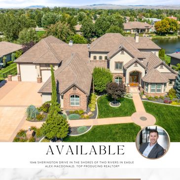 Nestled along the Boise River in Two Rivers’ coveted enclave—The Shores—this masterfully crafted property meets your needs and fulfills your dreams in a private Eagle setting. Marvelously appointed, nearly 5,300 sq ft of enhanced lifestyle features grand entry and sweeping staircase, custom woodwork, vaulted ceilings, heated flooring, vast great room with fireplace; formal dining room, optional theater room, game room, entry-adjacent-office. Like the great room, the owners' suite presents sweeping river views. It also features a double-sided fireplace, luxurious bath with heated floors, ample closets, & safe room. In the kitchen double ovens, prep sink, & walk in pantry delight chefs of all abilities, all with Kitchenaid appliances. The large RV garage welcomes your toys, and includes ALL the maintenance hookups. Mature landscaping enhances the gorgeous half-acre setting, and a private waterfall and full patio kitchen combine with all the benefits of Two Rivers life, to make this a home a haven.